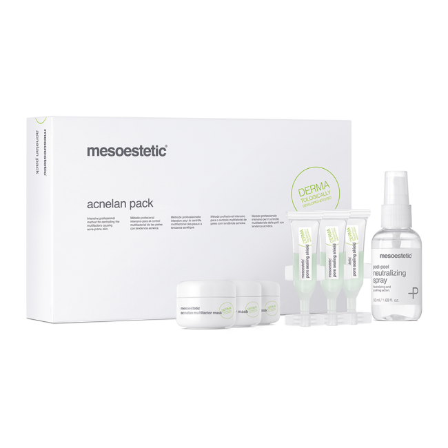 For effective, rapid and convenient control of acne-prone and moderate seborrheic skin, mesoestetic presents acnelan. It offers a cross-cutting approach to address the various factors that trigger the disease, combining an intensive clinical treatment for professional use with a home maintenance treatment and offering a complete line of products.