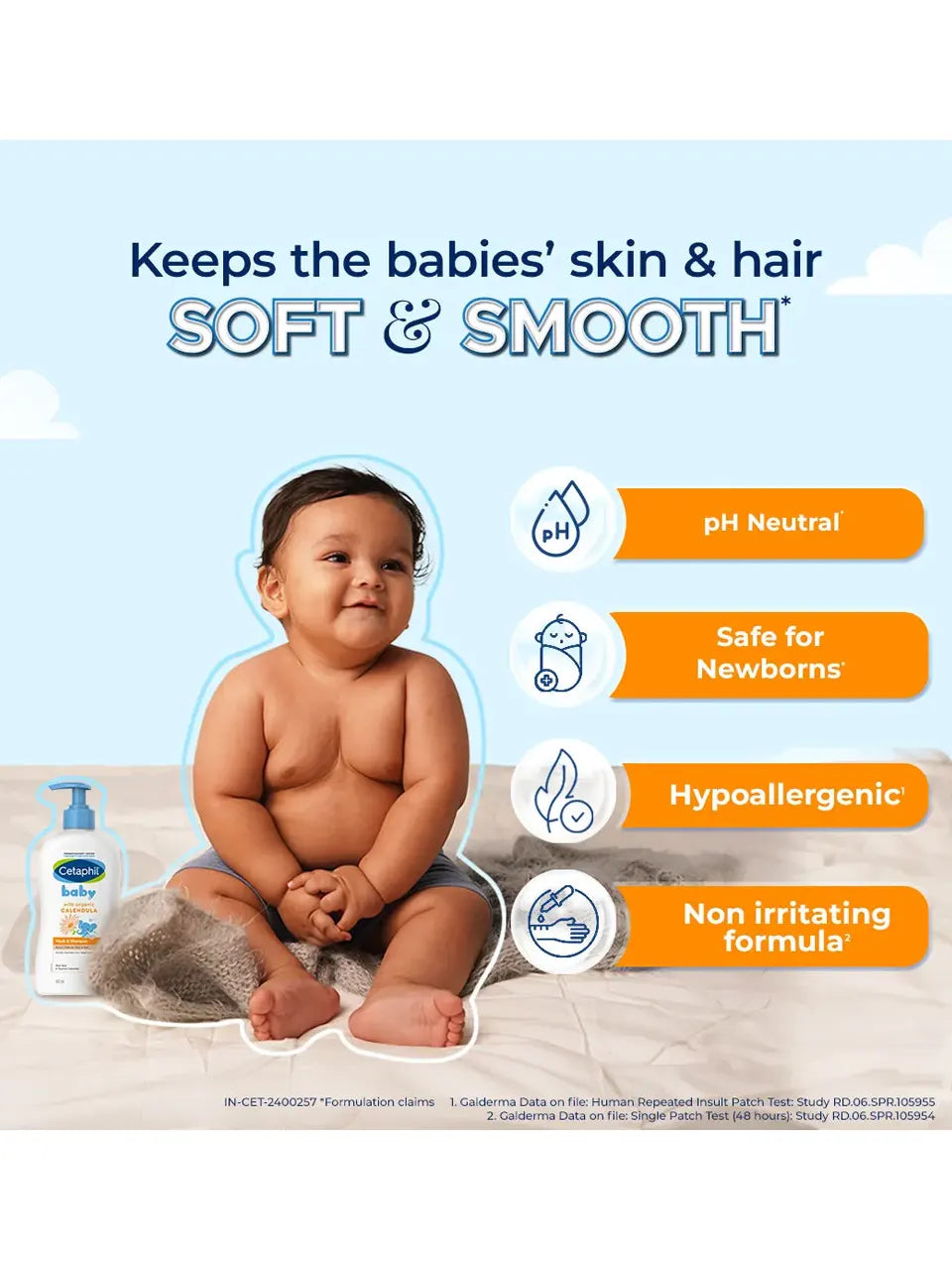 Bath time is the best time, and Cetaphil Baby Wash & Shampoo with Organic Calendula makes it even better! Specially designed to cleanse baby`s delicate skin and hair without drying it out, this gentle formula with organic calendula lathers up to wash away impurities while nourishing skin and it`s tear-free! That means it rinses clean, leaves no residue, and won`t sting eyes, so baby will go from sudsy to smiley. Features: 1. Tear free formula that blends into a rich, lathering wash that gently cleans your baby`s delicate skin and hair without drying 2. Formulated with calming organic calendula, this gentle wash & shampoo rinses clean, leaving a soft, fresh scent 3. Dermatologist tested and formulated to be gentle enough for infant`s skin; pour into hand or washcloth and apply to hair and body 4. Tear free, paraben free, colorant free, mineral oil free, and hypoallergenic