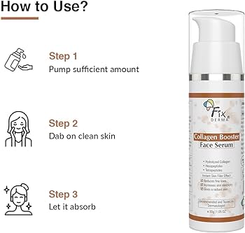Fixderma Collagen Booster Face Serum is enriched with Hydrolyzed Collagen, Tripeptides, Hexapeptides, and Tetrapeptides to boost collagen, improve elasticity, reduce fine lines, and deeply hydrate for youthful, firm skin.
