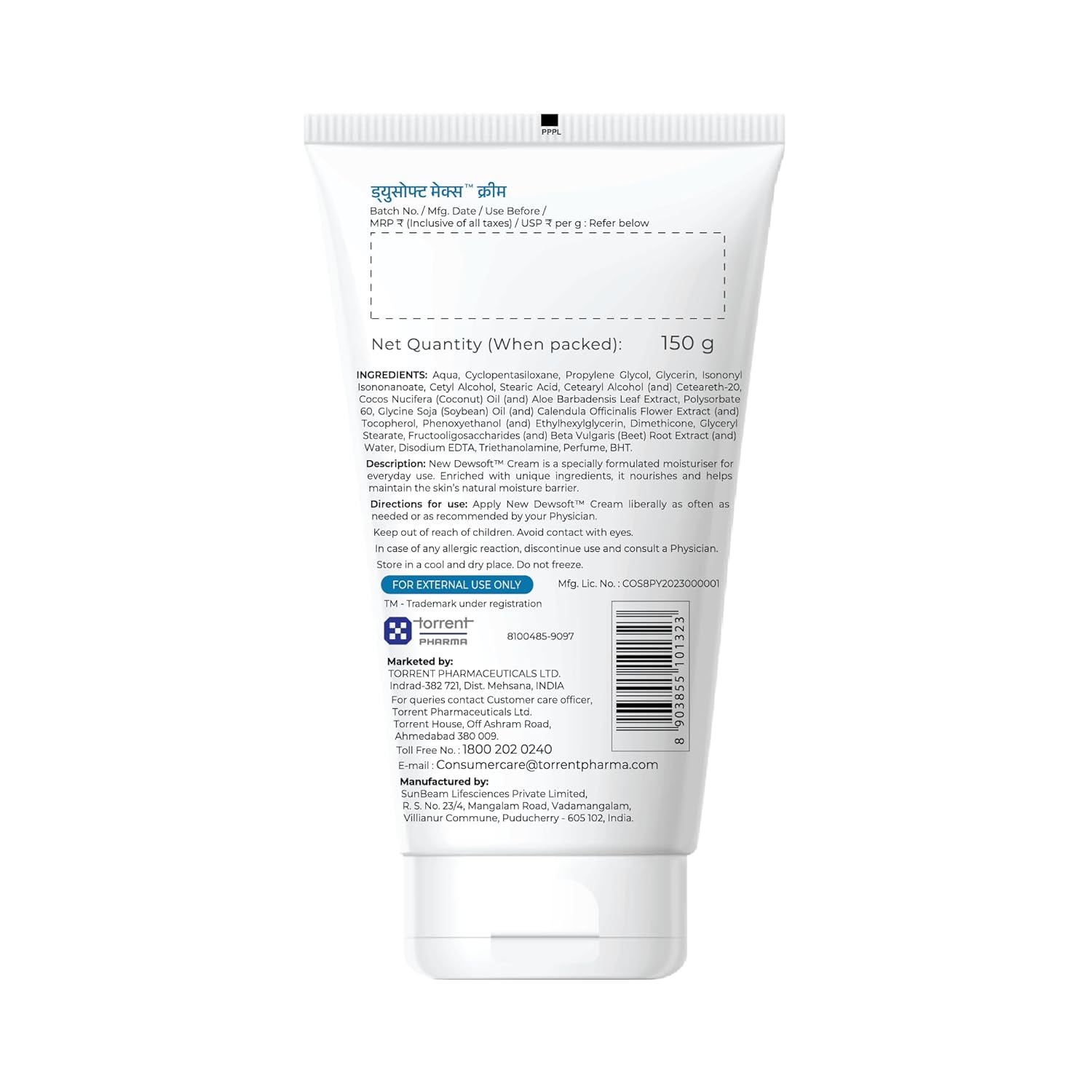 Dewsoft Moisturising Cream 150g with Coconut & Aloe for Daily Hydration