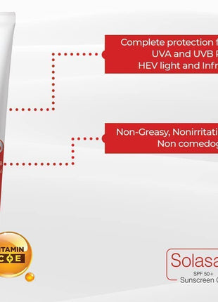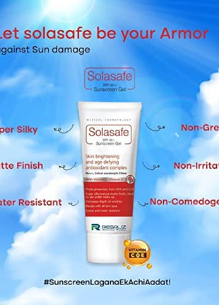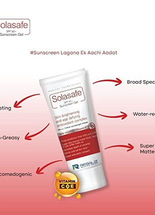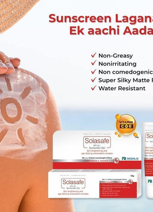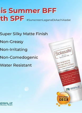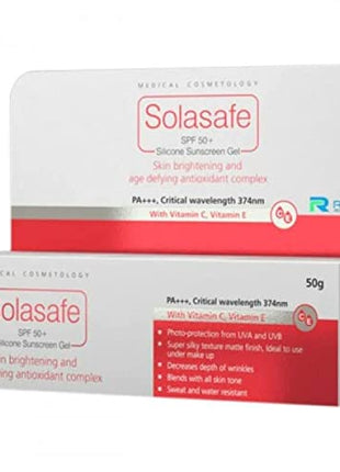 Solasafe SPF 50 Silicone Sunscreen Gel offers high sun protection with a lightweight, non-greasy formula. Dermatologically tested and suitable for all skin types, it absorbs quickly, prevents sunburn and premature aging, and keeps skin smooth. Perfect for daily, on-the-go sun defense.